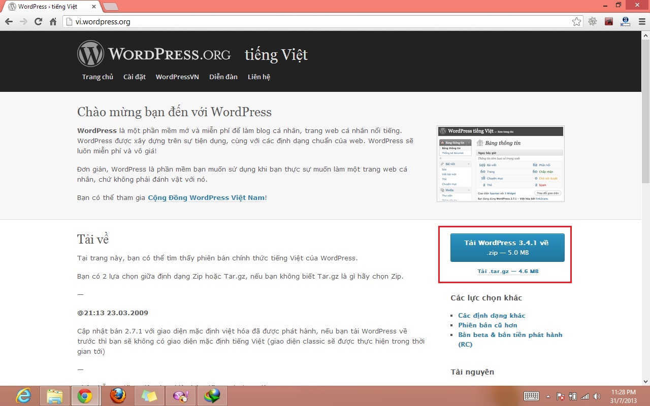 Bước 1: Trước khi cài Wordpress bắt buộc các bạn phải có bộ cài đặt của Wordpress